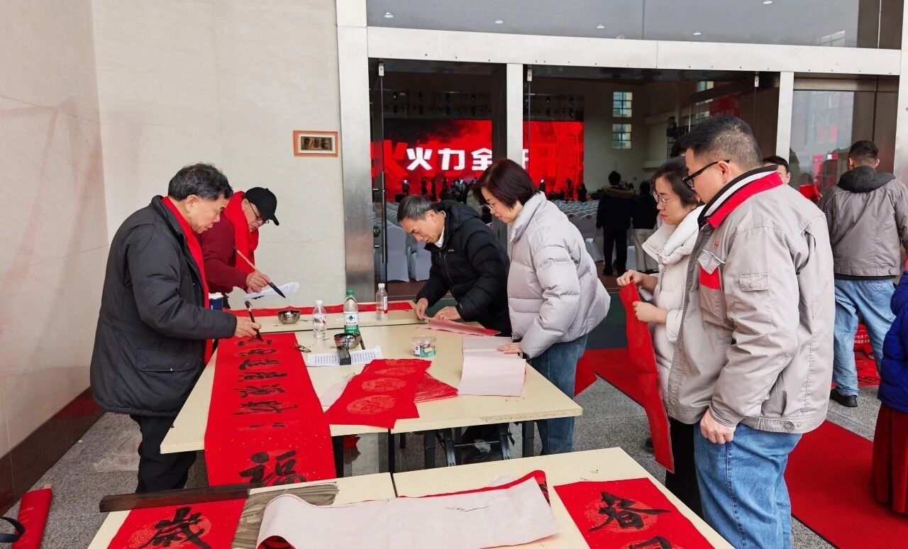 一張張紅火的福字,一副副對仗工整的對聯,將新年的喜氣與吉祥送到大家手中。員工們紛紛圍在桌前,挑選自己心儀的作品,有的還現場“定制”內容,希望把最特別的祝福帶回家。